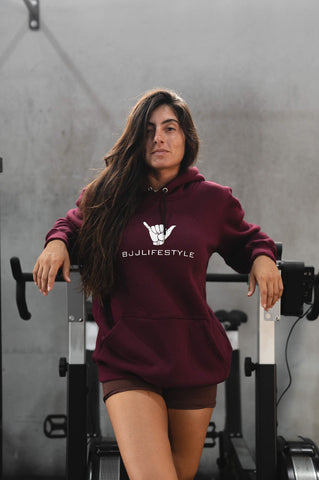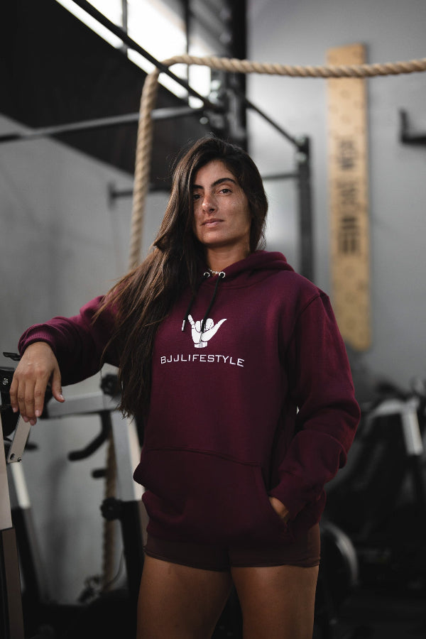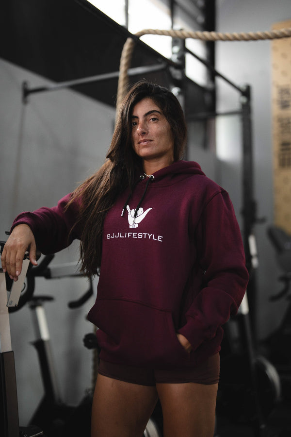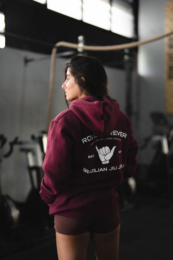 Roll Forever Collection – The BJJLifestyle Silk-Screen Printed Hoodie in sleek, timeless Dark Red. Whether you're braving the cold, heading to the gym, or simply want to elevate your style while showing your love for Jiujitsu, this hoodie has got you covered.